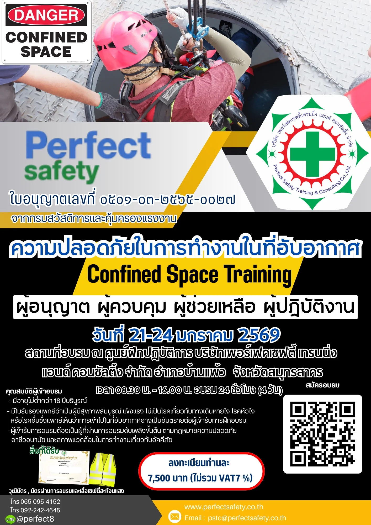 หลักสูตรความปลอดภัยในการทำงานในที่อับอากาศ วันที่ 21-24 มกราคม 2569 ณ ศูนย์ฝึกปฏิบัติการฯ จ.สมุทรสาคร