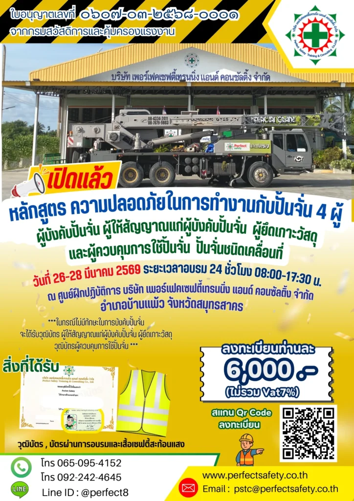 หลักสูตรความปลอดภัยในการทำงานกับปั้น 4 ผู้ วันที่ 26-28 มี.ค. 2569 ณ ศูนย์ฝึกปฏิบัติการฯ จ.สมุทรสาคร