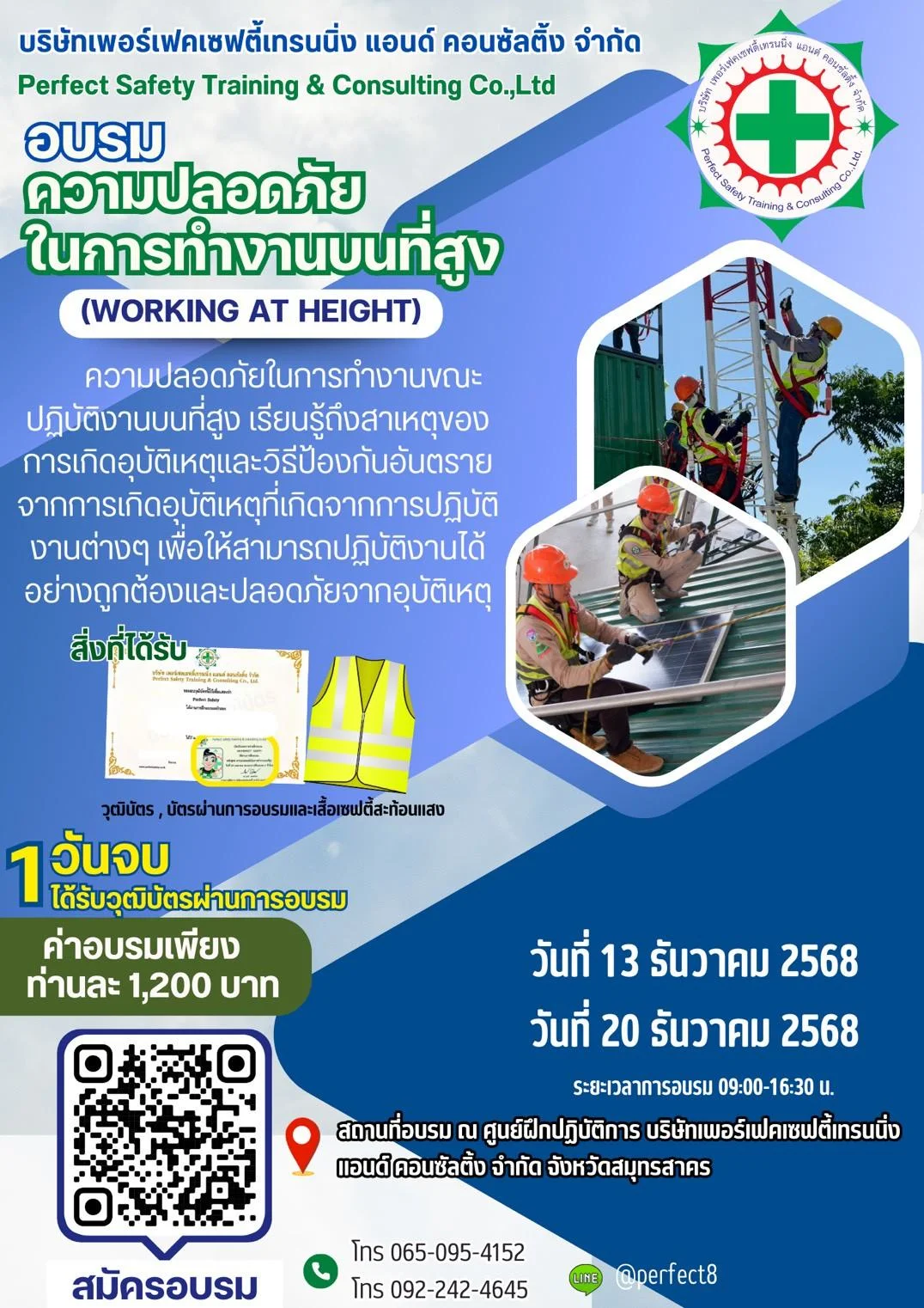 อบรมความปลอดภัยในการทำงานบนที่สูง วันที่ 13, 20 ธ.ค. 2568 ณ ศูนย์ฝึกปฏิบัติการฯ จ.สมุทรสาคร
