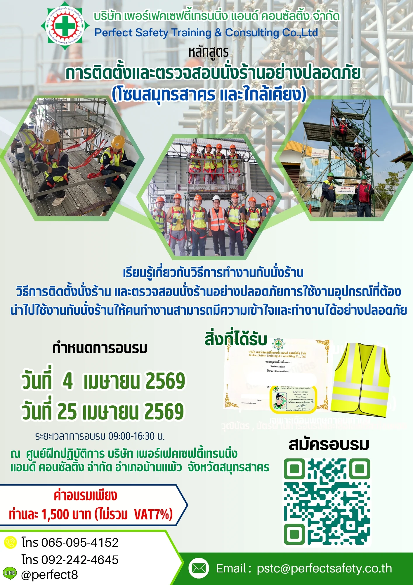 หลักสูตรการติดตั้งและตรวจสอบนั่งร้านอย่างแลอดภัย (โซนสมุทรสาคร และใกล้เคียง)