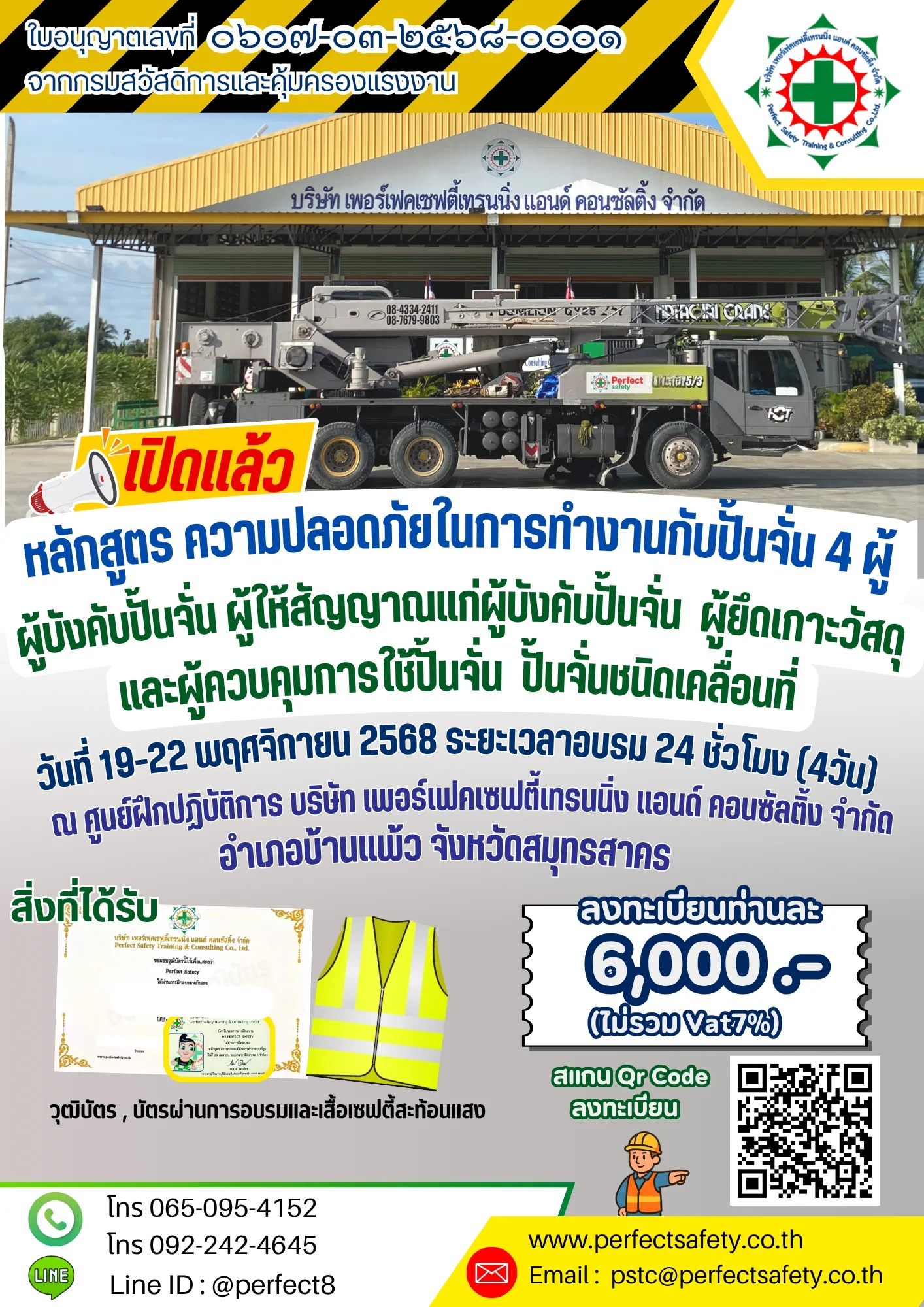 หลักสูตรความปลอดภัยในการทำงานกับปั้นจั่น 4 ผู้ ณ ศูนย์ฝึกปฏิบัติการ จ.สมุทรสาคร