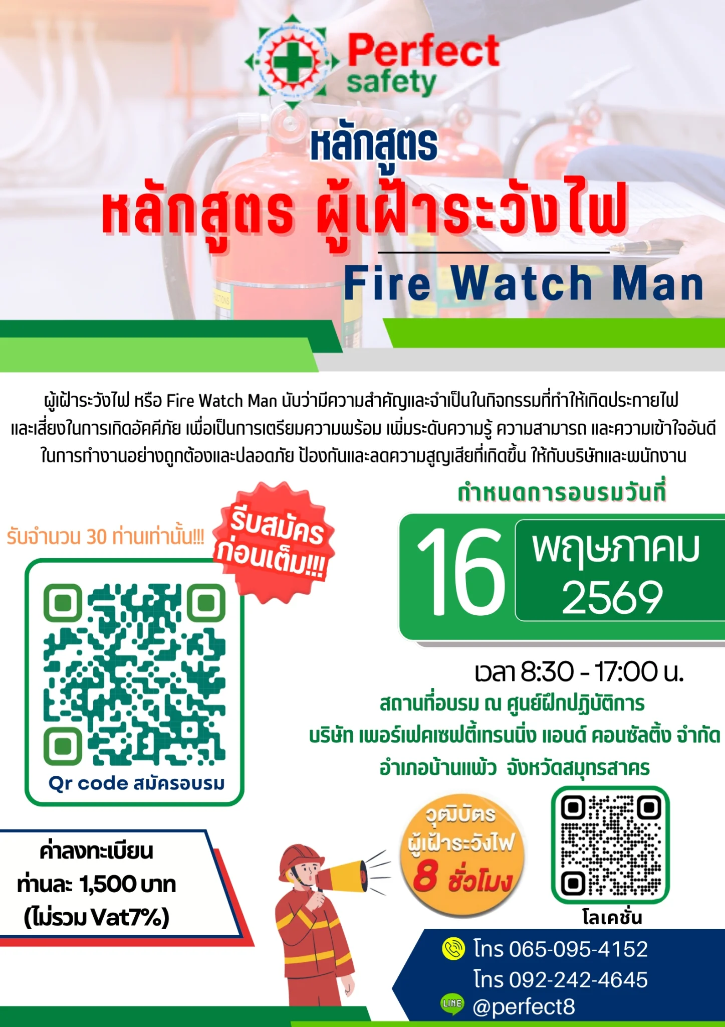 หลักสูตรผู้เฝ้าระวัง ณ ศูนย์ฝึก บริษัท เพอร์เฟคเซฟตี้เทรนนิ่ง แอนด์ คอนซัลติ้ง จำกัด อำเภอบ้านแพ้ว จังหวัดสมุทรสาคร