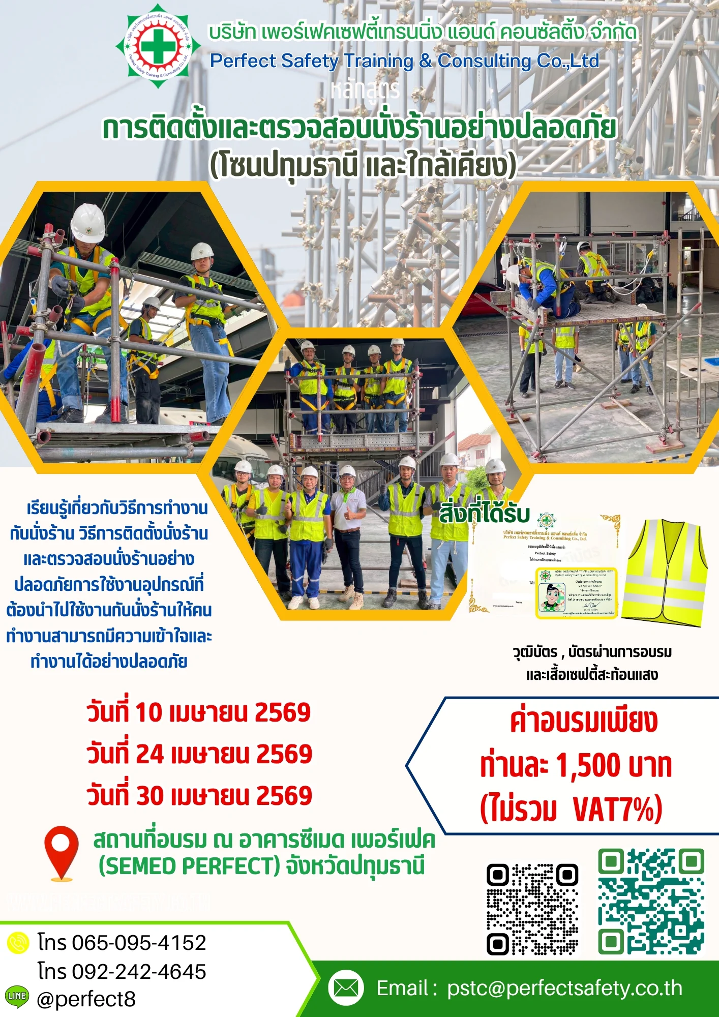 หลักสูตร การติดตั้งและตรวจสอบนั่งร้านอย่างปลอดภัย ณ อาคารซีเมด เพอร์เฟค จังหวัดปทุมธานี