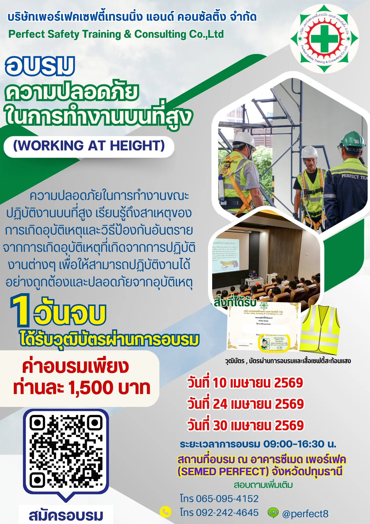 หลักสูตร อบรมความปลอดภัยในการทำงานบนที่สูง ณ อาคารซีเมด เพอร์เฟค จังหวัดปทุมธานี