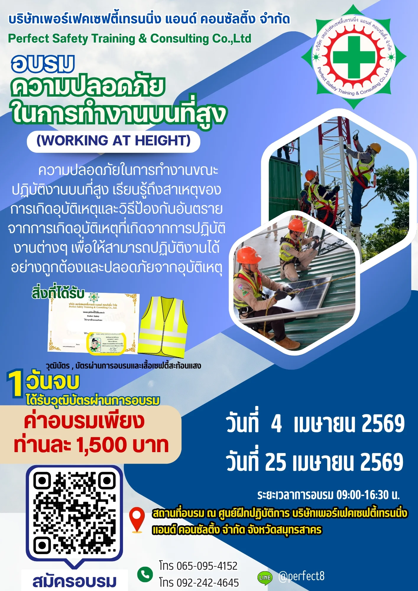 หลักสูตร อบรมความปลอดภัยมรการทำงานบนที่สูง ณ ศูนย์ฝึกปฎิบัติการ บริษัทเพอร์เฟคเซฟตี้เทรนนิ่ง แอนด์ คอนซัลติ้ง จำกีด จังหวัดสมุทรสาคร