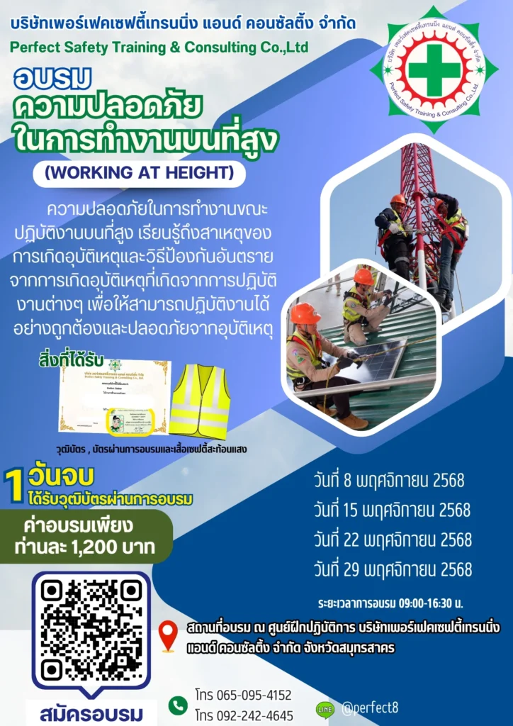 อบรมความปลอดภัยในการทำงานบนที่สูง ณ ศูนย์ฝึกปฏิบัติการฯ จ.สมุทรสาคร