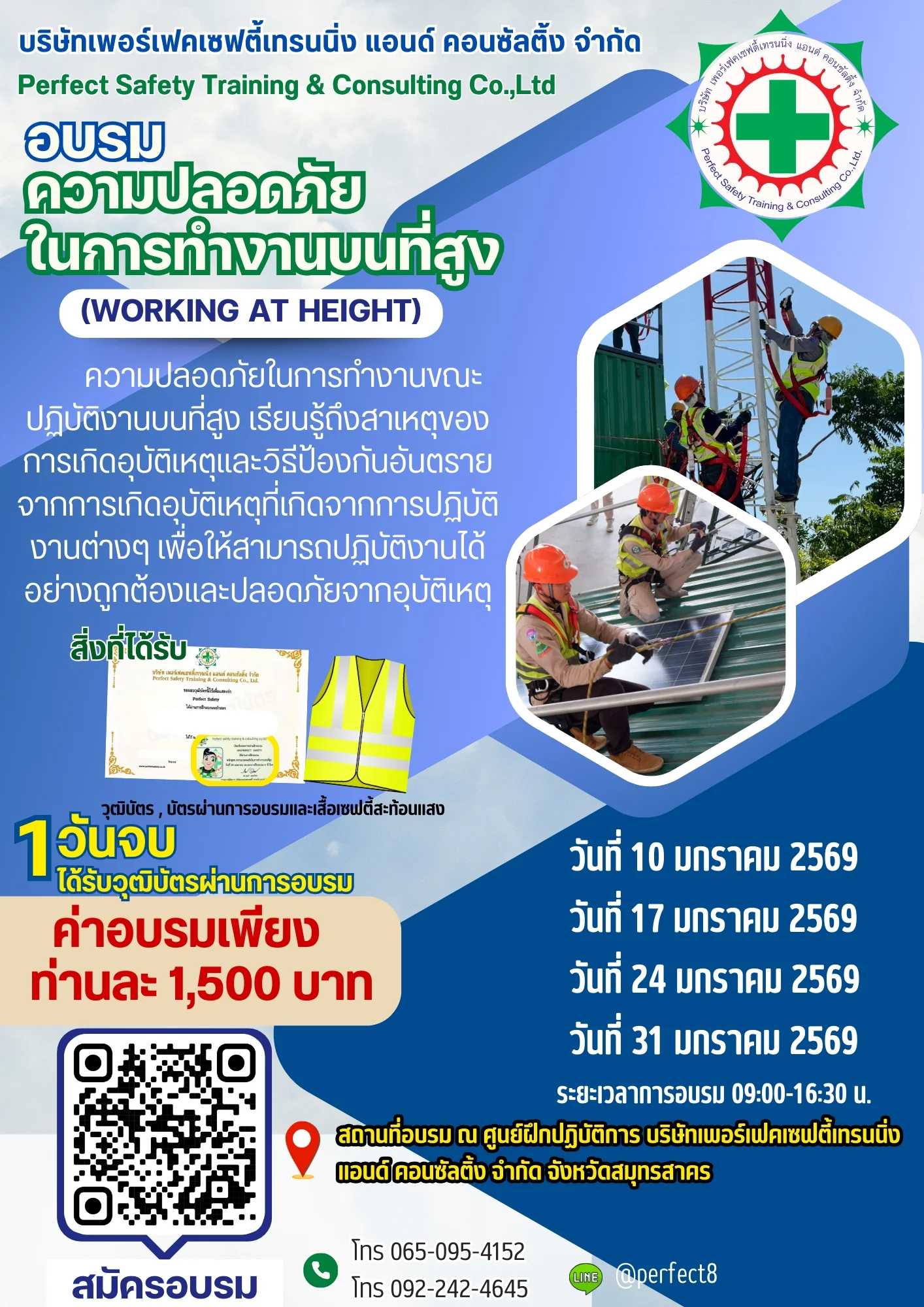 อบรมความปลอดภัยในการทำงานบนที่สูง วันที่ 10, 17, 24, 31 มกราคม 2569 ณ ศูนย์ฝึกปฏิบัติการฯ จ.สมุทรสาคร