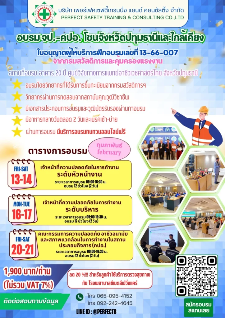หลักสูตรเจ้าหน้าที่ความปลอดภัยในการทำงาน (จป. หัวหน้างาน , จป บริหาร และ คปอ.)