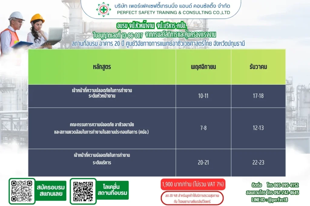 หลักสูตรเจ้าหน้าที่ความปลอดภัยในการทำงาน (จป. หัวหน้างาน , จป บริหาร และ คปอ.)