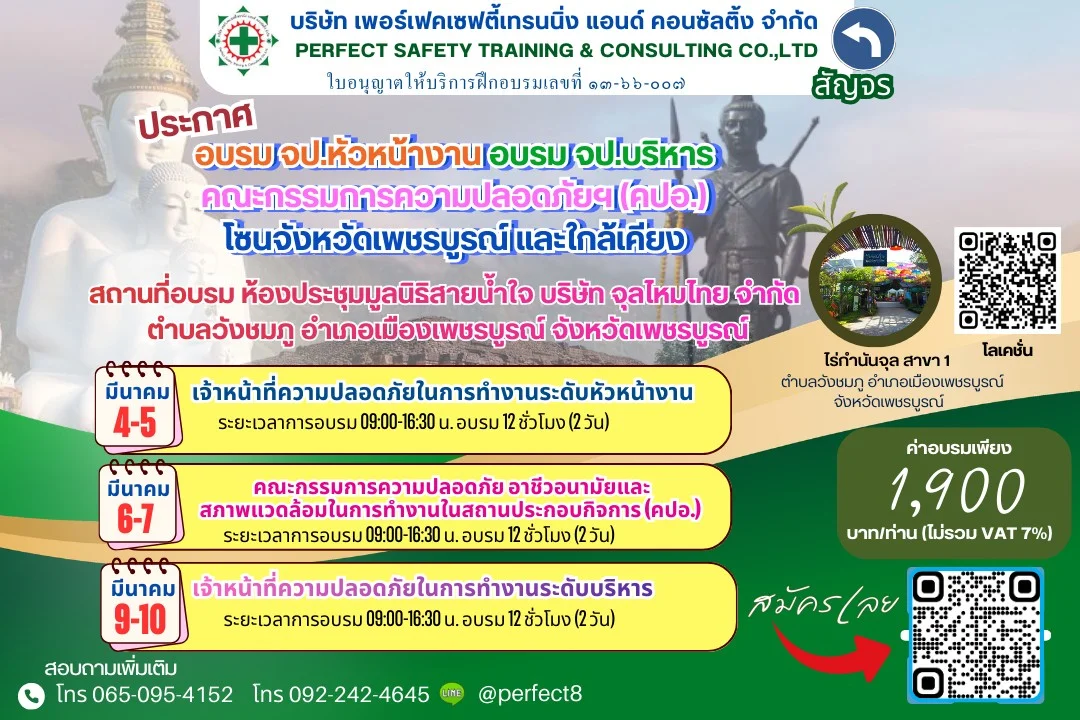 หลักสูตรเจ้าหน้าที่ความปลอดภัยในการทำงาน (จป. หัวหน้างาน , จป บริหาร และ คปอ.)
