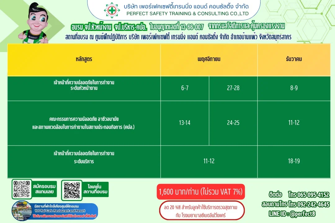 หลักสูตรเจ้าหน้าที่ความปลอดภัยในการทำงาน (จป. หัวหน้างาน , จป บริหาร และ คปอ.)