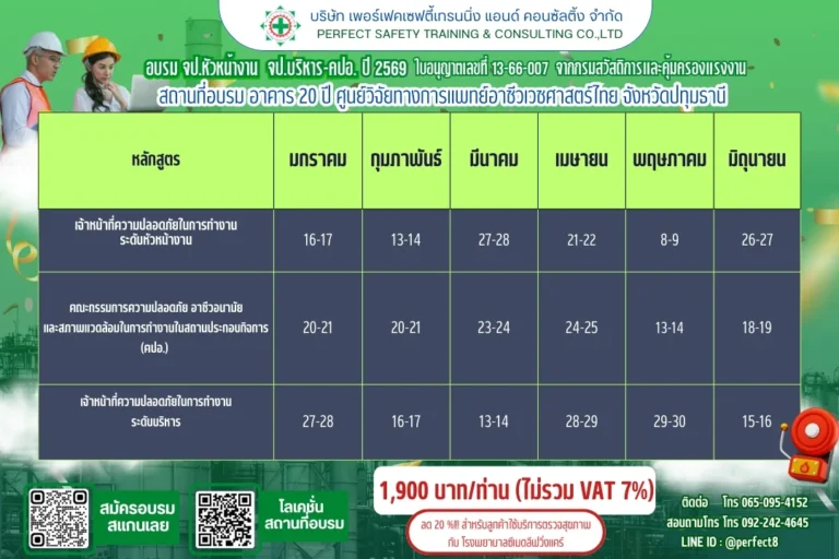 หลักสูตรความปลอดภัยในการทำงานในที่อับอากาศ สำหรับผู้อนุญาต วันที่ 21 มกราคม 2569 ณ ศูนย์ฝึกปฏิบัติการฯ จ.สมุทรสาคร